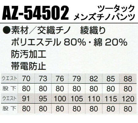 作業服 作業ズボン アイトス ツータックチノパンツ AZ-54502 メンズ 秋冬用 作業着 W70〜120