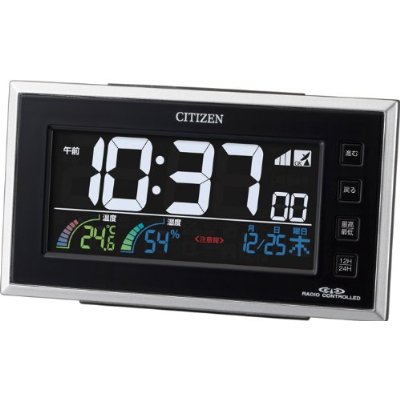 目覚まし時計 置き時計 温湿度計 電波時計 シチズン デジタル AC電源タイプ 8RZ121-002 カラー表示 熱中症 食中毒 インフルエンザ カビダニ注意の表示機能