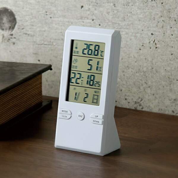 パット テーブルクロック温湿度計付 置き時計 掛け時計 置き時計 温湿度計、日付表示、アラーム機能付 10721 時計 温湿度計 日付表示 アラーム テーブルクロック