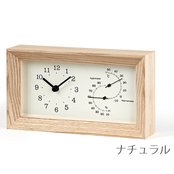 サイズ約W200 × H110 ×D46 mm素 材ホワイトアッシュ、ガラス重 量約390gムーブメントステップムーブメントdesignLemnos Design Group機 能温度計、湿度計備 考単三乾電池×1個で動作します。