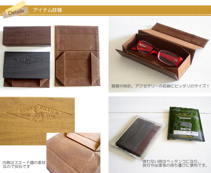 商品説明 木目調の高級感のある眼鏡ケースです(ポリウレタン素材)折り畳みが出来、ぺたんこになるので旅行などのお出かけ時にも便利です。