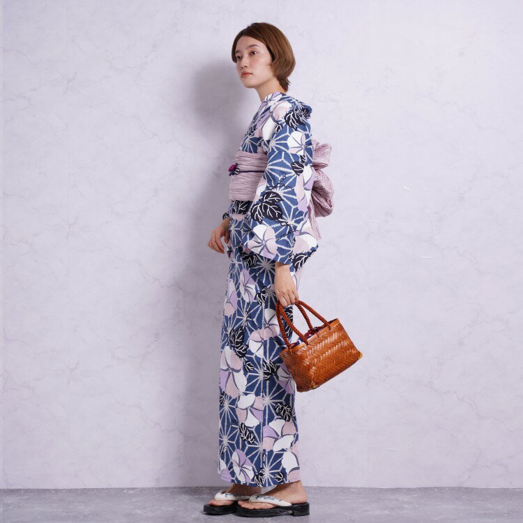 身丈 163cm 袖丈 約49cm 裄丈 約67cm 素材 ゆかた : 綿100% 帯 : ポリエステル 下駄 : 桐(商品画像はイメージです。